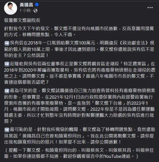 擔任桃園市長期間也被爆出金主偷倒有毒廢棄物,