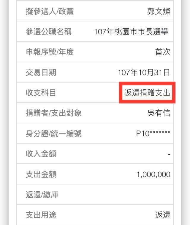 → cottontsai: 吳捐款只有一筆,鄭早退還還在黑123.194.128.106 12/18 10:19