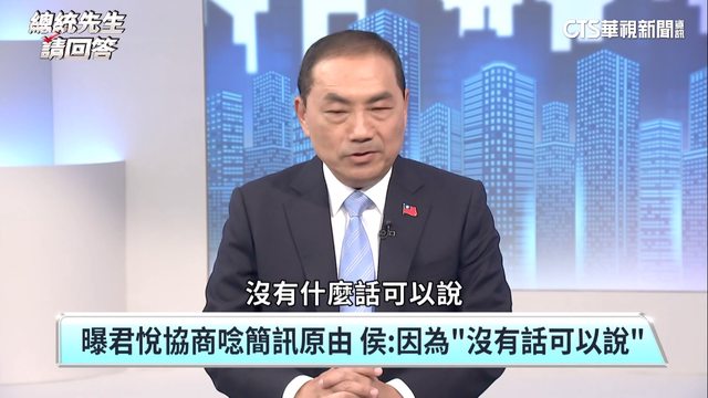: 針對侯友宜在君悅會談上唸出民眾黨總統候選人柯文哲傳給他的簡訊,被外界視為「高
