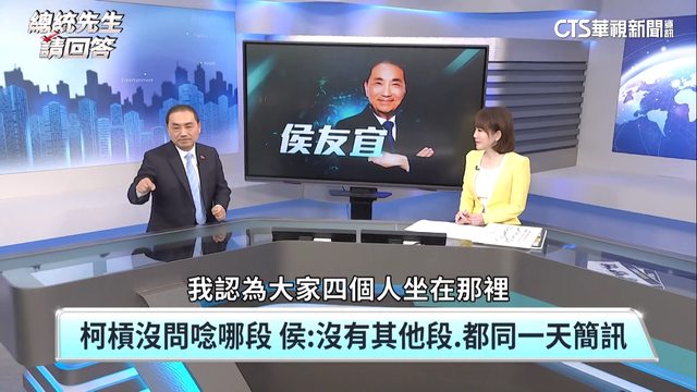 : 主持人問到侯在五漢廢言決戰君悅之巔唸簡訊有人說是高招讓人看清柯的為人