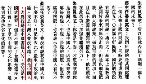 → CavendishJr: 不是啦,蔡英文是說她是中國人因為 27.242.186.93 12/19 11:37