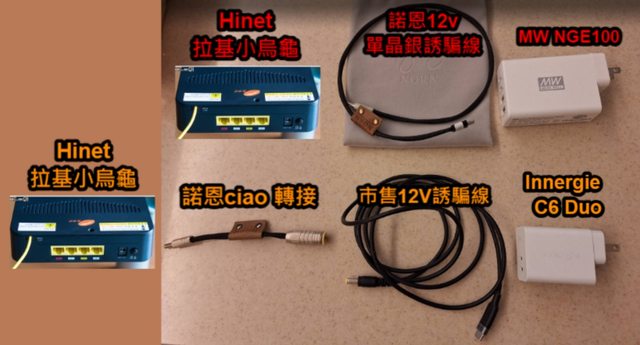1.Innergie C6 Duo ==> 市售12v誘騙DC線 => 諾恩 ciao轉接線 ==> 小烏龜