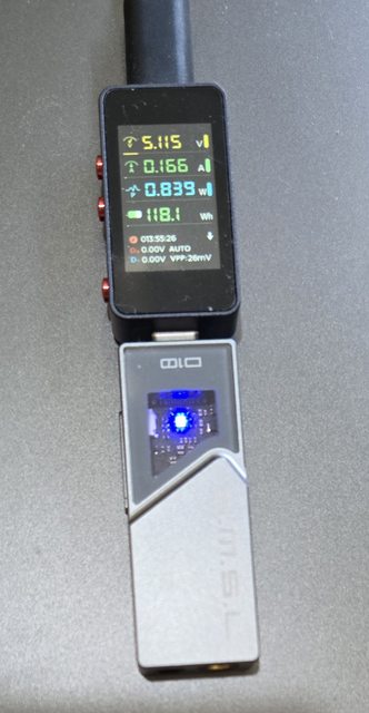 我用USB電流表測量功耗,在連接低阻抗耳機時,滿音量播放YT影片,如使用4.4平衡口功耗
