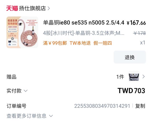 3.購買時間、地點:耳機在2020年FB耳機版購買,線在今年8/18收到