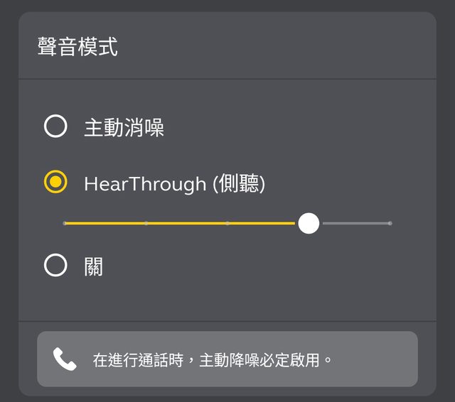 不過我倒是更喜歡他的側聽模式 有五段側聽的程度可以去調整 不是只有開跟關