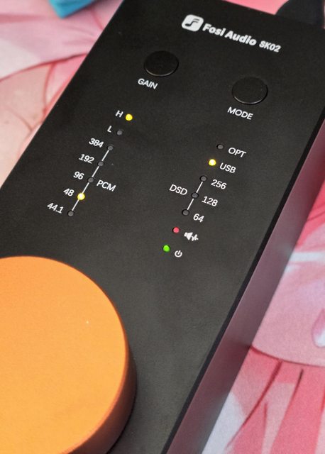 可以即時查看輸出格式,以及有兩個按鈕能切換高/低增益和切換輸入源(USB/光纖),比較