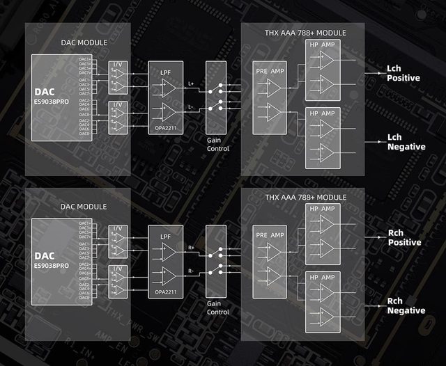ES9038PRO DAC,並配備了全平衡的 8 通道 THX AAA-788+ 放大模組,大幅提升了耳機輸