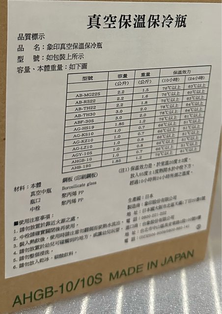 3. 象印真空保溫保冷瓶 (未使用過)