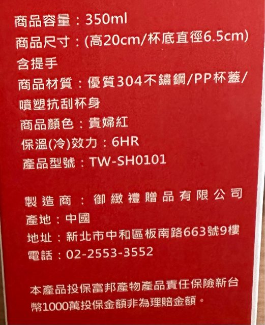 4. 保溫瓶 350ml (未使用過)