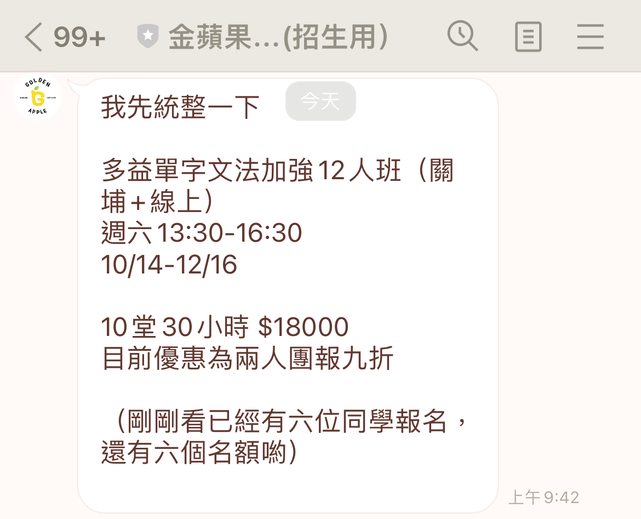[閒聊] 金蘋果-多益單字文法加強班