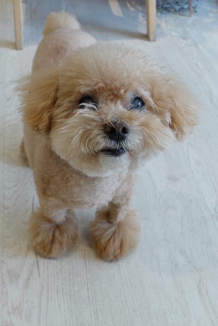 特徵:紅貴賓年紀大了有褪色/已結紮/眼睛有白內障