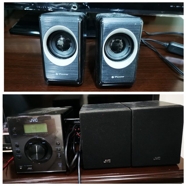 電腦喇叭一組、JVC音響(無法過電,本想自行修理,上網看影片後沒有工具便作罷,不然