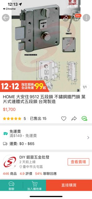 台灣製造 安住 多段式大門鎖+鑰匙數隻