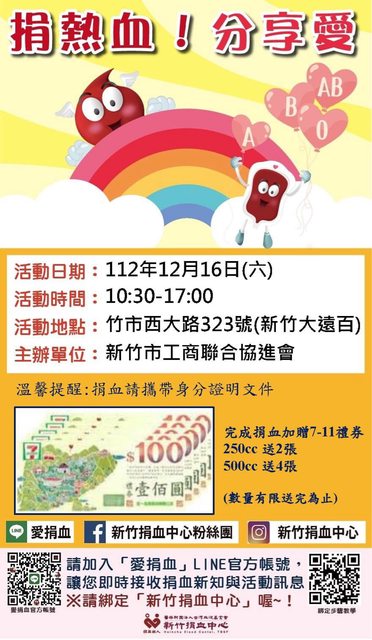標題[情報] 12/16 新竹市大遠百捐血送7-11禮券