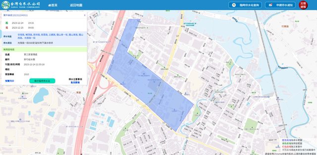 關埔附近部分區域要停水至12/25早上9點