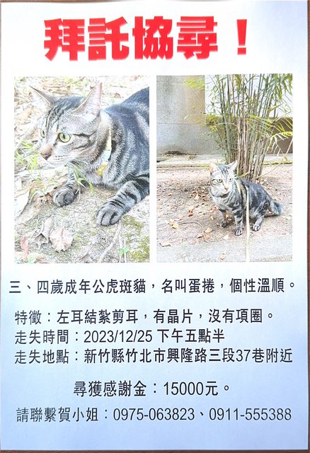 推 michidoko : 附近多貼點傳單,還有各個協尋的社團 12/26 19:17