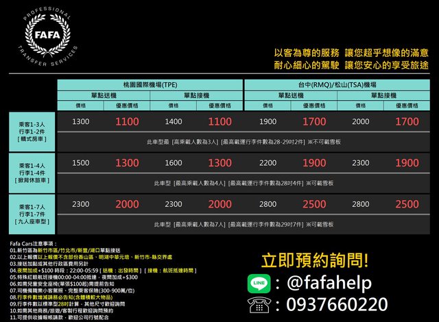 標題[優惠] Fafa Cars-機場接送鄉民優惠
