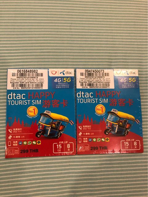 物品項目:泰國網路卡x2set,去泰國旅遊沒用到剩下來的,開卡使用期限包裝上是寫4/3