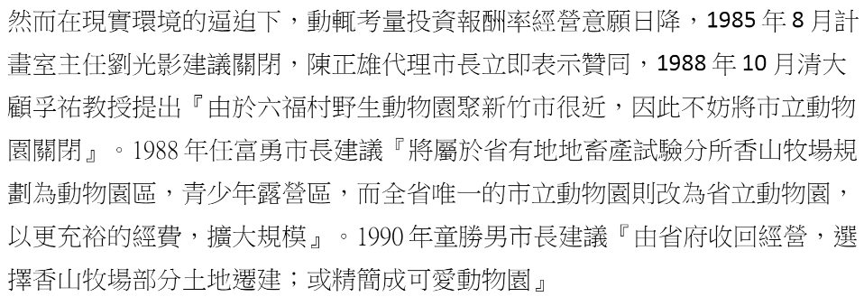 TaiwanXDman : 新竹動物園歷史 寫1990年左右 青青草原那塊剛要釋出 03/18 04:27