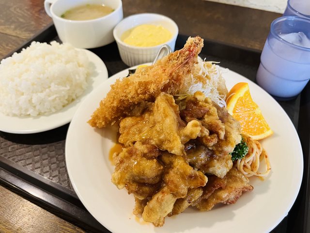 故,點了炸蝦和南蠻雞的套餐、飯量選最大,中午點套餐有附贈免費的飲料喝到飽,在門