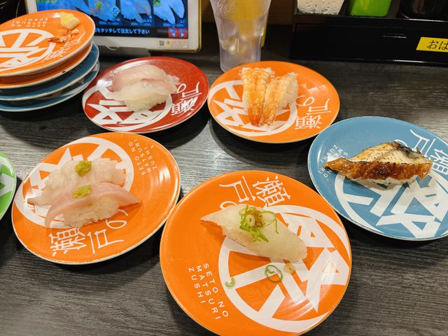 轉壽司:瀬戸の祭寿し 兵庫町店用餐。這間店的母企業設立於高松市,除了開設迴轉壽