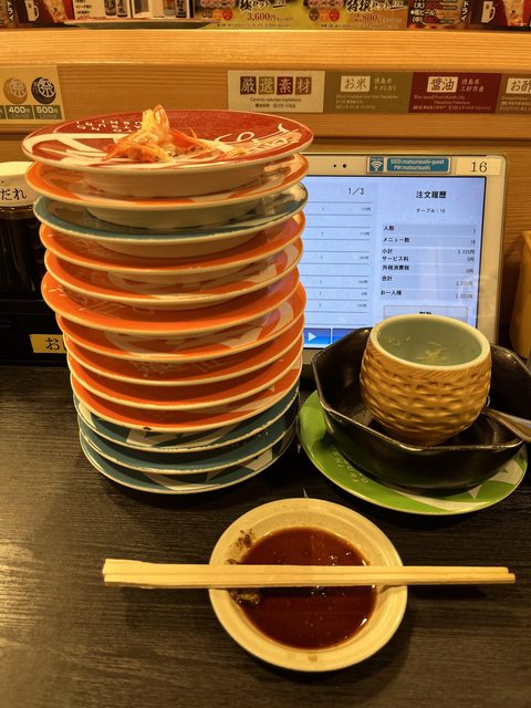 ↑沒想到赴日第一餐就爆吃了16盤...