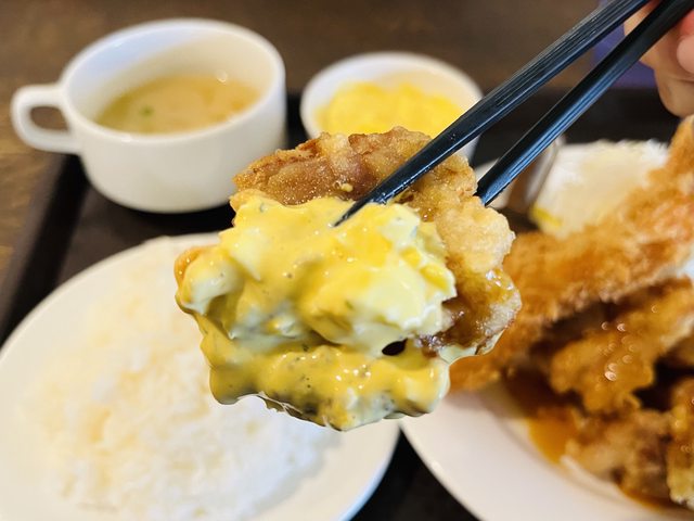 ↑我點的套餐,包含炸蝦兩隻、タルタルチキン(有日向坂的粉絲嗎XD)很多塊、高麗菜絲