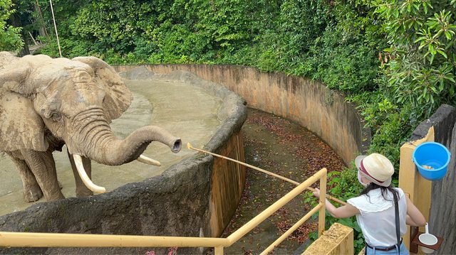 看看動物,也可花100円體驗餵大象。