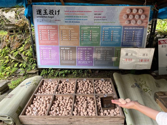 約35分鐘到達停船處,下船走一小段路可到大猊鼻岩,旁邊還可購買各式運玉(3個100円