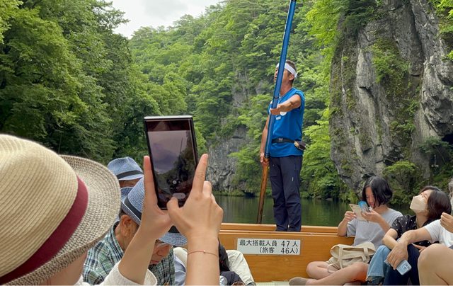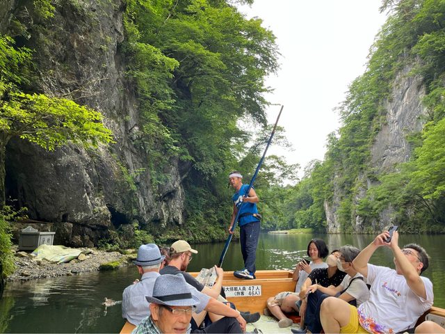 猊鼻溪為日本百景,也是唯一全程以人力划船往返於天然河流的方式;溪名是因為有類似
