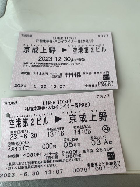 一個是京成Skyliner成田機場來回京成上野的兌換券: