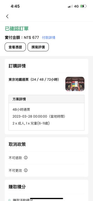 1. 讓售品項:東京地鐵通票48小時,2位成人1位小孩已領實體票
