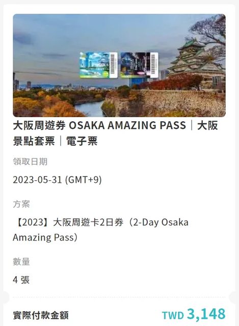 1. 讓售品項:大阪周遊卡2日券 x 4