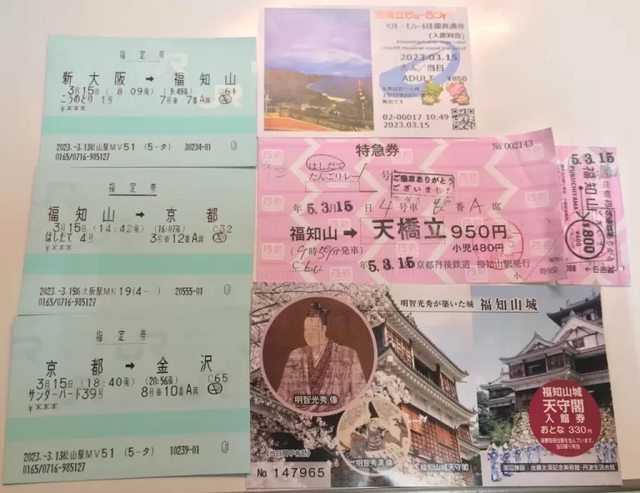 3/14福之山-天橋立補票950円+800円 /天橋立-福之山800
