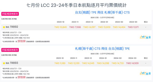 標題[分享] 7月份 LCC 23夏、23冬逐月平均票價統計