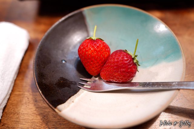 最後水果是甜度蠻高的草莓,看到整棵紅透的草莓,就知道有特別選過,草莓控的我們覺