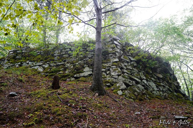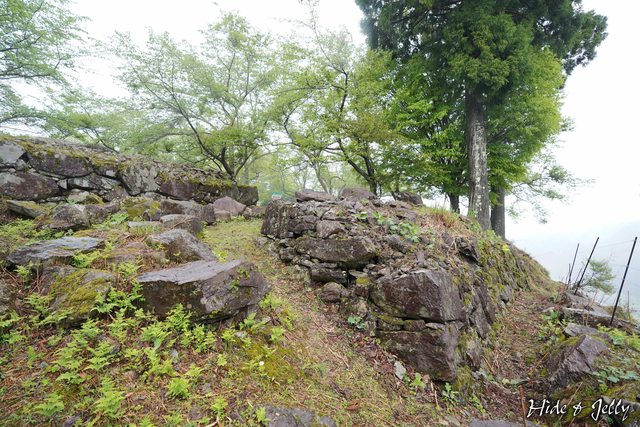 二の丸側邊的斜坡旁,有一段高4公尺以上的石垣,應該是加強二の丸的穩固作用,這段