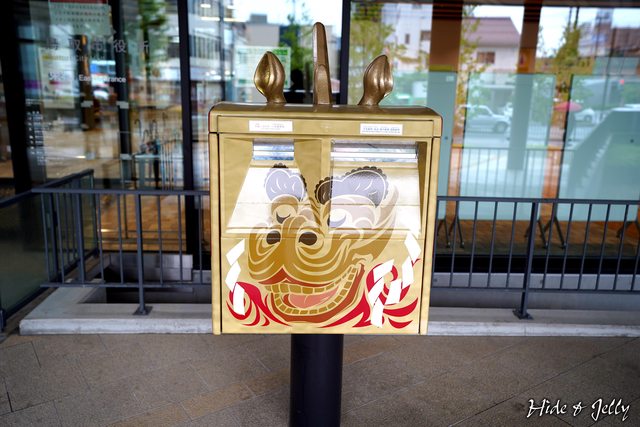 市役所前的郵筒,市金色的麒麟獅子,郵筒長出耳朵和角,但整個高級感UPUP,鳥取這幾