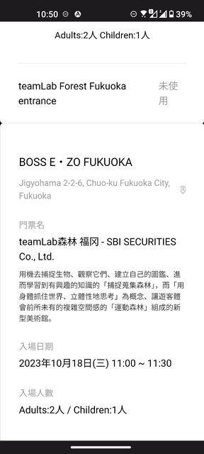 1. 讓售品項:teamLab福岡門票2大1小,日期112.10.18(三),11:00~11:30入場