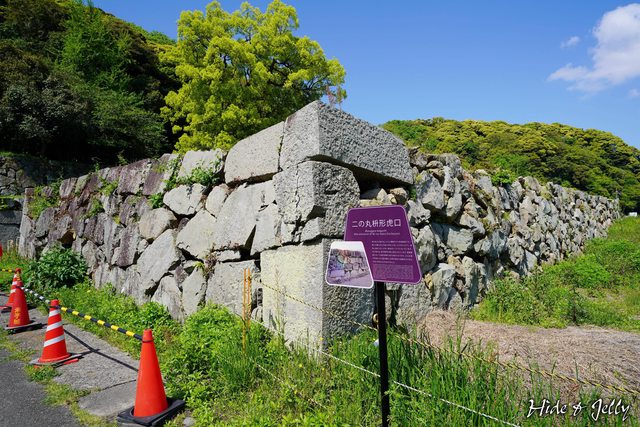 經過一片新綠的櫻花林後,可以來到本丸地區最後一個被調查復原的遺跡「水手御門」。