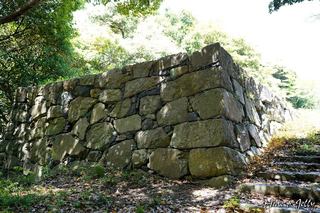 分歧點往本丸再走200公尺,就可以看到大天守台下的五段石垣了,這段路雖然有200公尺
