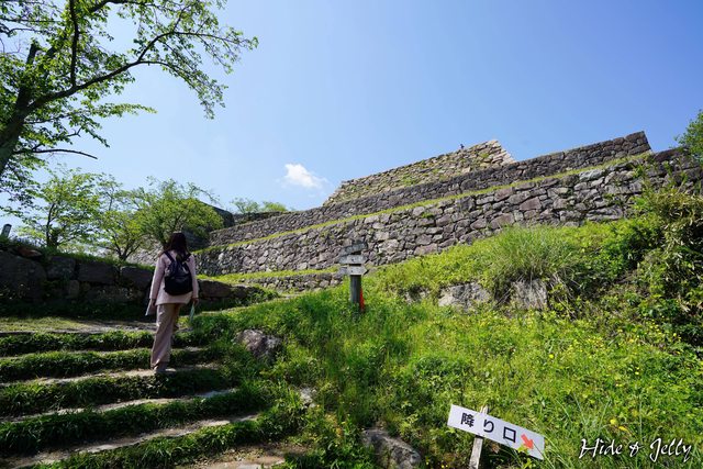 側面也可以看到本丸內的天守台只有2顆石垣而已,但本丸往下的部分則出現段差。