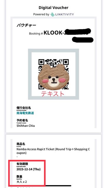 南海電鐵rapid來回成人車票2張QR code,期限至2023.12.14