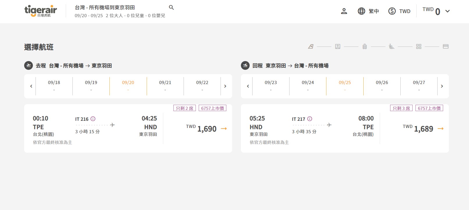 推 Aurora5566 : 東京一開始看來回都1689 但加了行李跟稅金 結帳變一 08/15 11:51