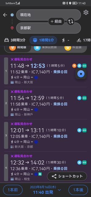 → na1061 : 點40再坐往博多,現在在新下關等,明早福岡班機 08/16 22:08