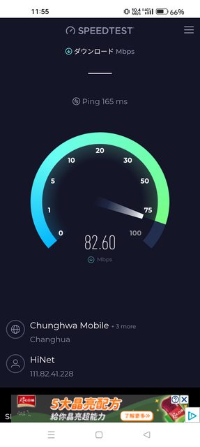 在沖繩來客夢更是測到將近300Mbps的高速(5CA)