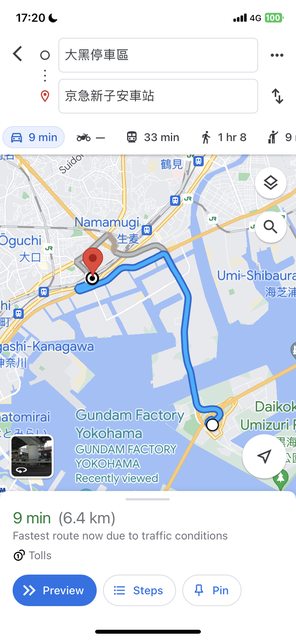 看Google Map車程約6.4km/9min會過收費站
