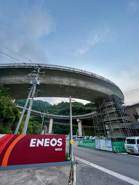 面朝島前內海的來居港腹地狹小,連公路都必須螺旋上山。