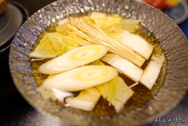 一開始就擺在桌上的是蟹鍋湯頭,已有白菜、大蔥與金針菇,看起來湯頭已有魚露調味。