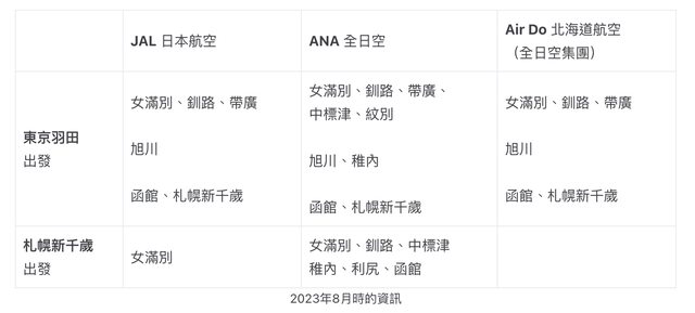 台灣有定期航班直飛的北海道航點,目前僅有札幌新千歲、函館與旭川,這些地方離道東